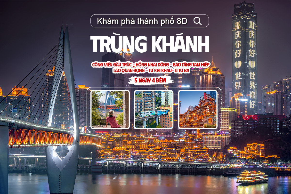 KHÁM PHÁ THÀNH PHỐ 8D: TRÙNG KHÁNH – CÔNG VIÊN GẤU TRÚC - HỒNG NHAI ĐỘNG - BẢO TÀNG TAM HIỆP - LÃO QUÂN ĐỘNG - TỪ KHÍ KHẨU - LÍ TỬ BÁ