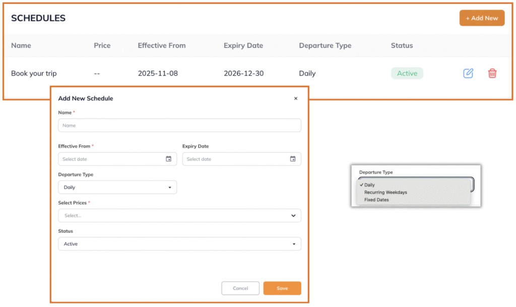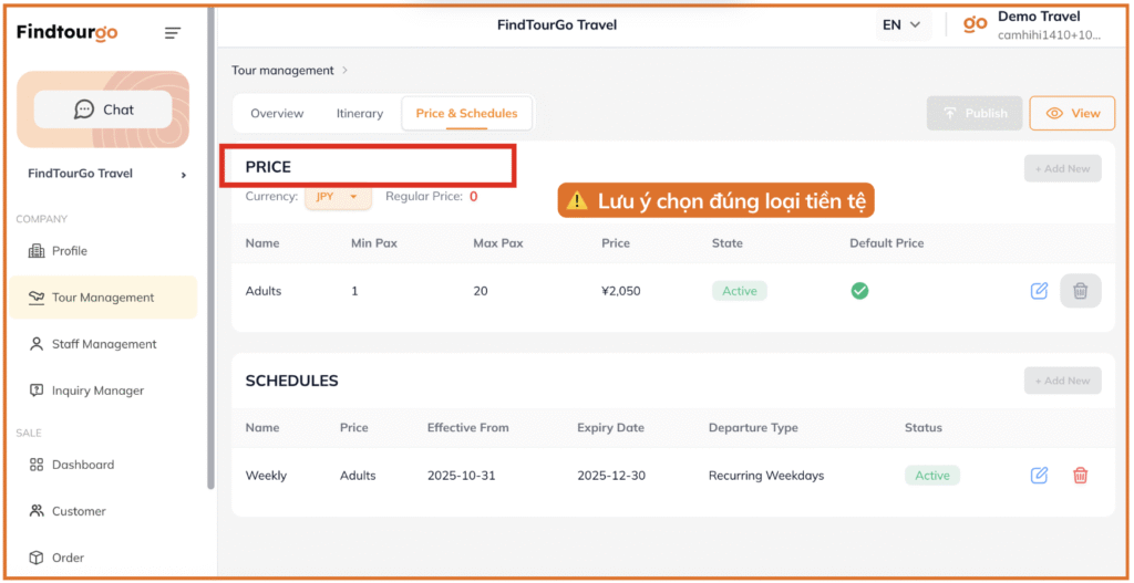 Bước 3: Thiết lập Giá & Lịch khởi hành (Price & Schedules)