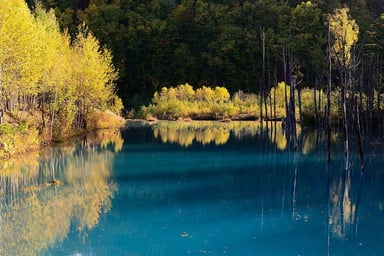 ● Hồ xanh Biei: Được xây dựng vào năm 1988 như một phần của hệ thống kiểm soát lũ lụt sau khi núi lửa Tokachi phun trào. Điều đặc biệt của hồ chính là màu nước xanh như ngọc, tựa như một bức tranh thủy mặc. Màu sắc này là do sự hòa quyện của các khoáng chất tự nhiên, đặc biệt là nhôm hydroxit keo, có tác dụng làm phân tán ánh sáng, tạo nên sắc thái xanh tuyệt đẹp cho hồ.