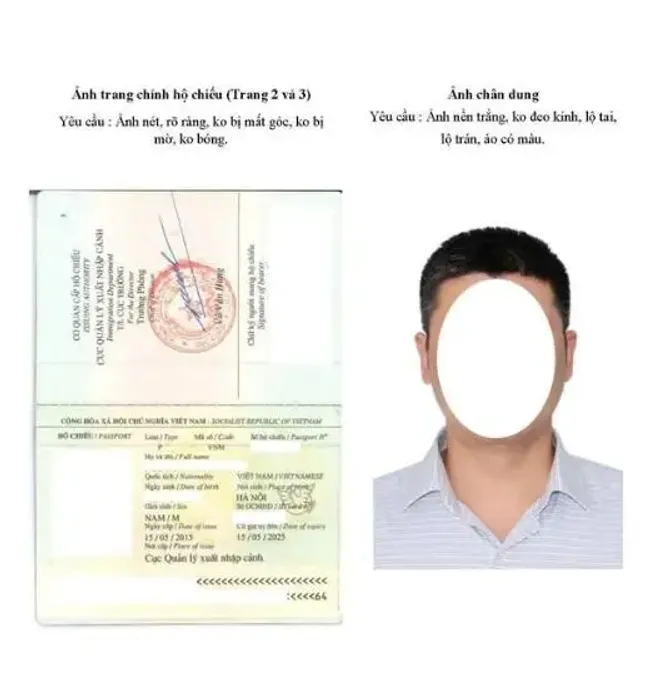 Ảnh trang chính hộ chiếu (Trang 2+3) theo mẫu (như hình bên) gửi hồ sơ trước ít nhất 9 ngày làm việc (không tính t7, CN)