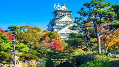 - Lâu đài Osaka: biểu tượng lịch sử của thành phố Osaka, được xây dựng vào thế kỷ XVI bởi Toyotomi Hideyoshi, vị tướng quân thống nhất Nhật Bản. Với kiến trúc uy nghi, tháp chính 8 tầng nổi bật giữa khuôn viên rộng lớn (chụp ảnh bên ngoài)